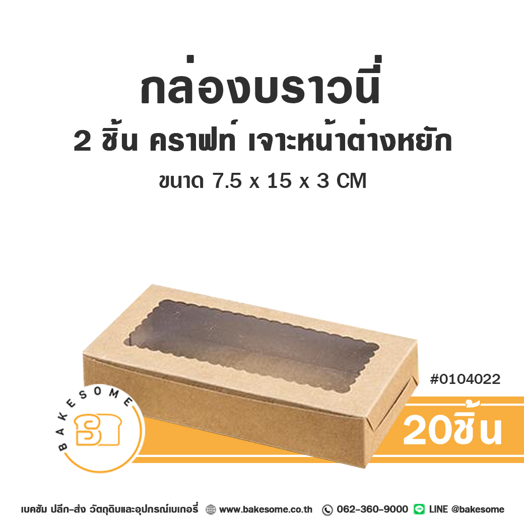 กล่องบราวนี่ 2 ชิ้น คราฟท์ เจาะหน้าต่างหยัก Brownies Box 2PCS Craft Window Pane (20ชิ้น)