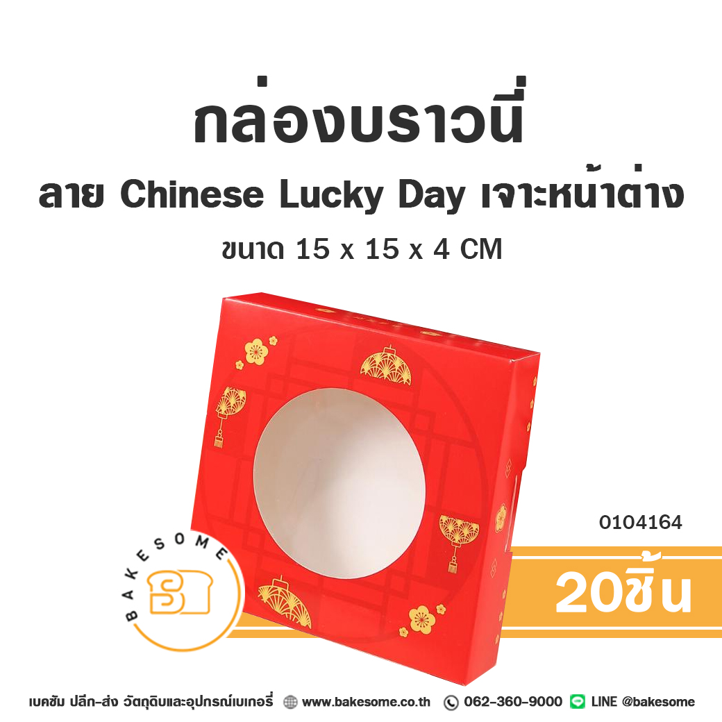 กล่องบราวนี่ กล่องทรงแบน ลาย Chinese Lucky Day เจาะหน้าต่าง Brownie Box Window Pane (20ชิ้น)