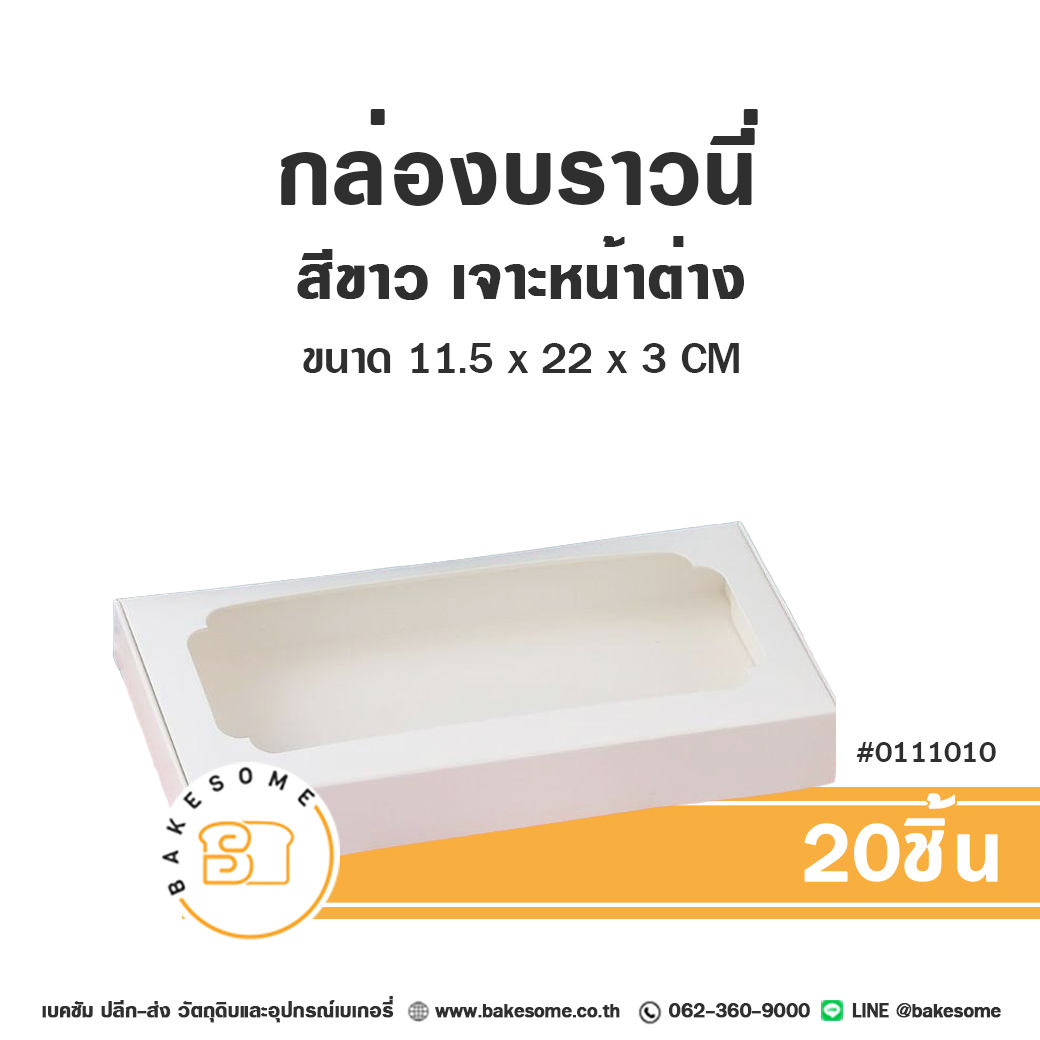 กล่องบราวนี่ สีขาว หน้าต่าง 11.5x22x3CM Brownie Box White (20ชิ้น)