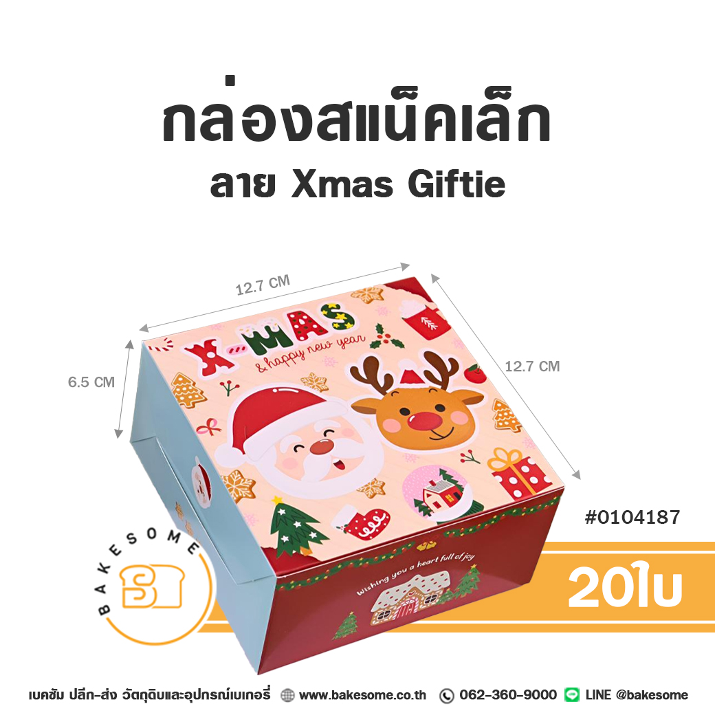 กล่องสแน็คเล็ก ลาย Xmas Giftie ขนาด กว้าง 12.7 x ยาว 12.7 x สูง 6.5 ซม. แพ็คละ 20 ใบ เหมาะสำหรับใช้ใส่ ขนม เบเกอรี่ ของว่าง หรือเซ็ตเบรก ในงานประชุม สัมมนา งานเลี้ยงต้อนรับ หรือมอบเป็นของฝากสุดประทับใจ
