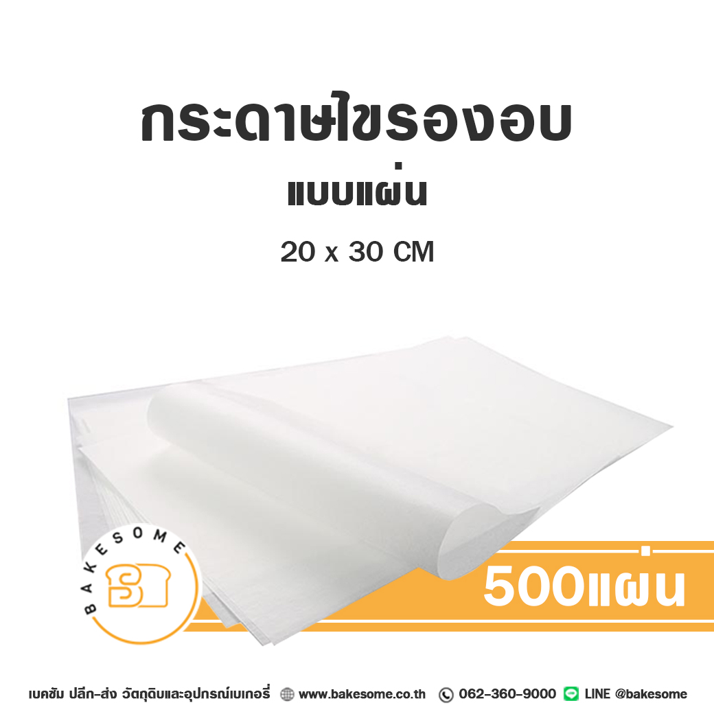 กระดาษไขรองอบ แบบแผ่น Baking Parchment Paper 20x30CM (500แผ่น/แพค) ซับไขมันได้ดี