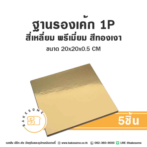 ฐานรองเค้ก 1P ทรงสี่เหลี่ยม พรีเมี่ยม สีทองเงา 5ชิ้น Square Cake Board Premium 1 Pound Shiny Gold 5PCS
