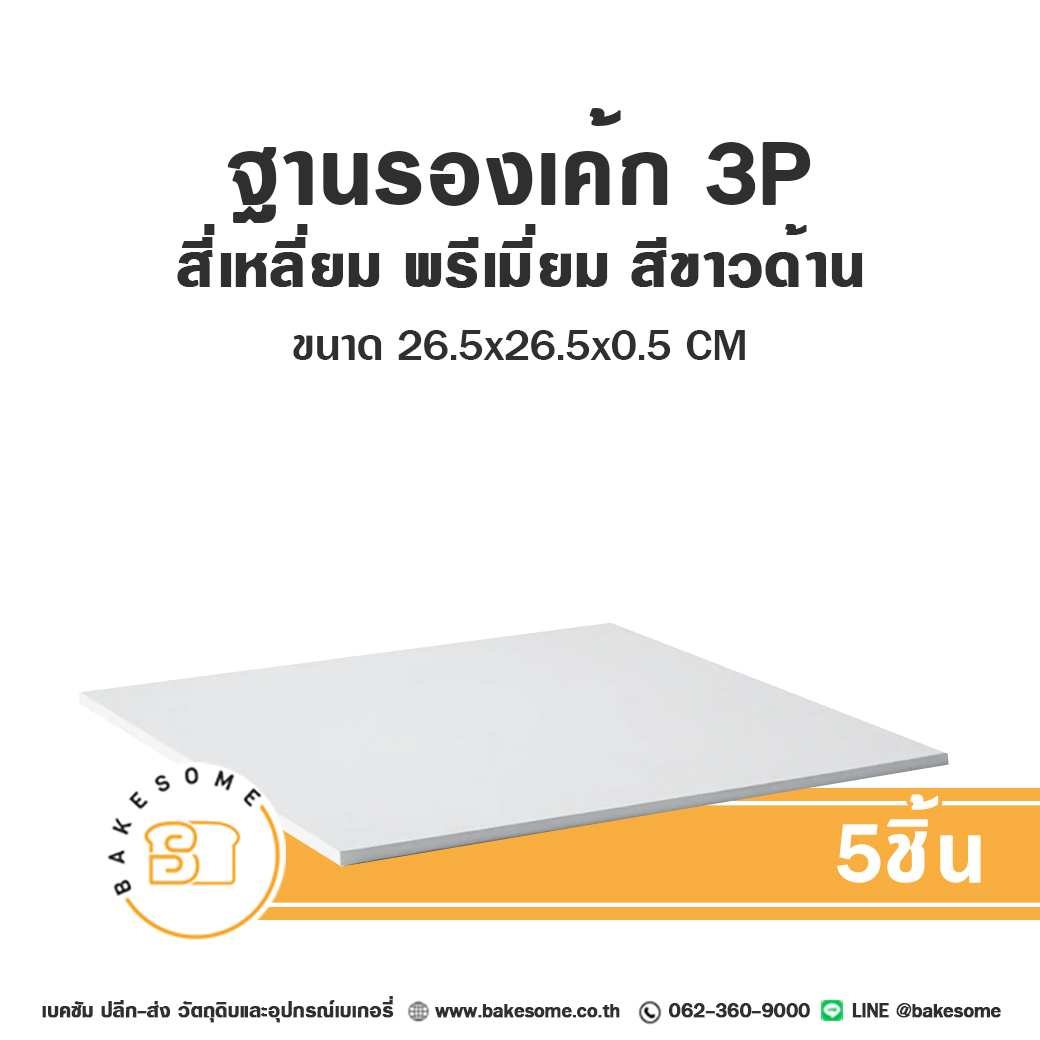 ฐานรองเค้ก 3P ทรงสี่เหลี่ยม พรีเมี่ยม สีขาวด้าน 5ชิ้น Square Cake Board Premium 3 Pound Matte White 5PCS (Copy)