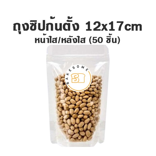 ถุงซิปก้นตั้งหน้าใส หลังใส ขนาด 12x17cm 50 ชิ้น