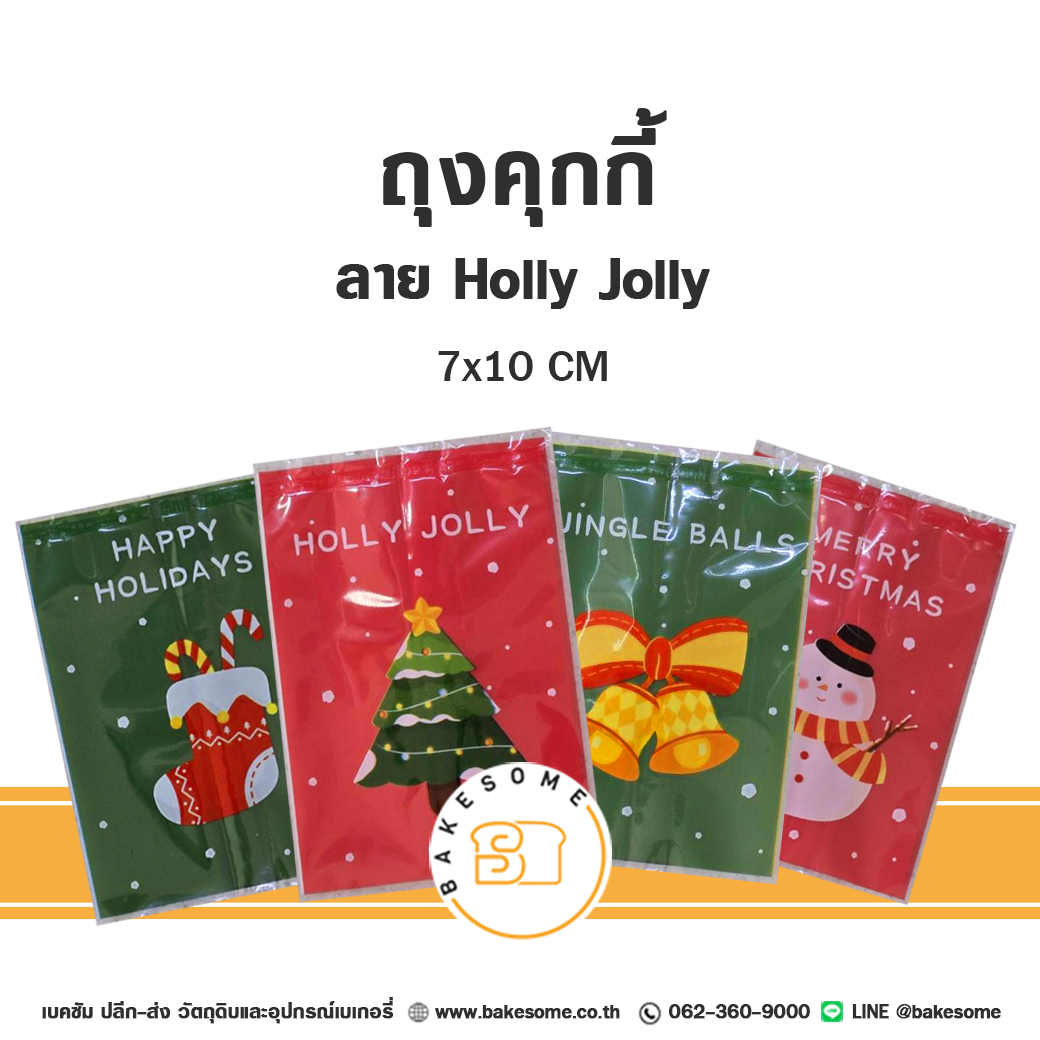 ถุงคุ้กกี้ ซองซีล ลาย Holly Jolly 7x10CM (100ชิ้น)