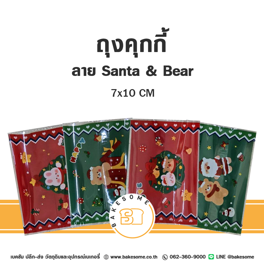 ถุงคุ้กกี้ ซองซีล ลาย Santa&Bear 7x10CM (100ชิ้น)