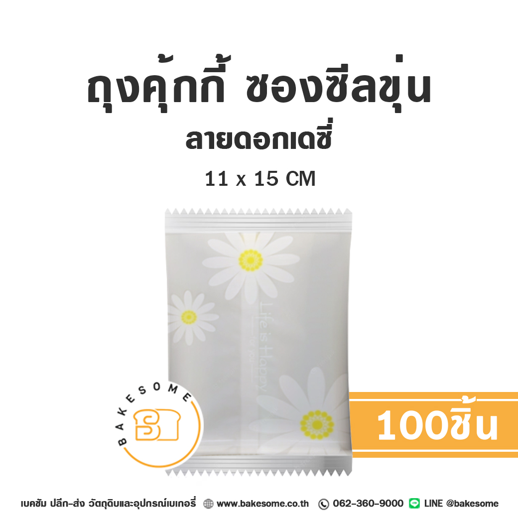 ถุงคุ้กกี้ ซองซีลขุ่น ลายเดซี่ (11x15CM.) 100 ชิ้น