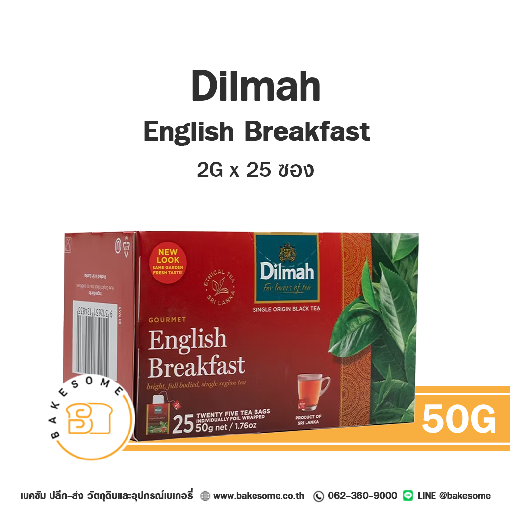 DILMAH English Breakfast Tea ดิลมา ชา อิงลิช เบรคฟาสต์ แบบซอง 2Gx25