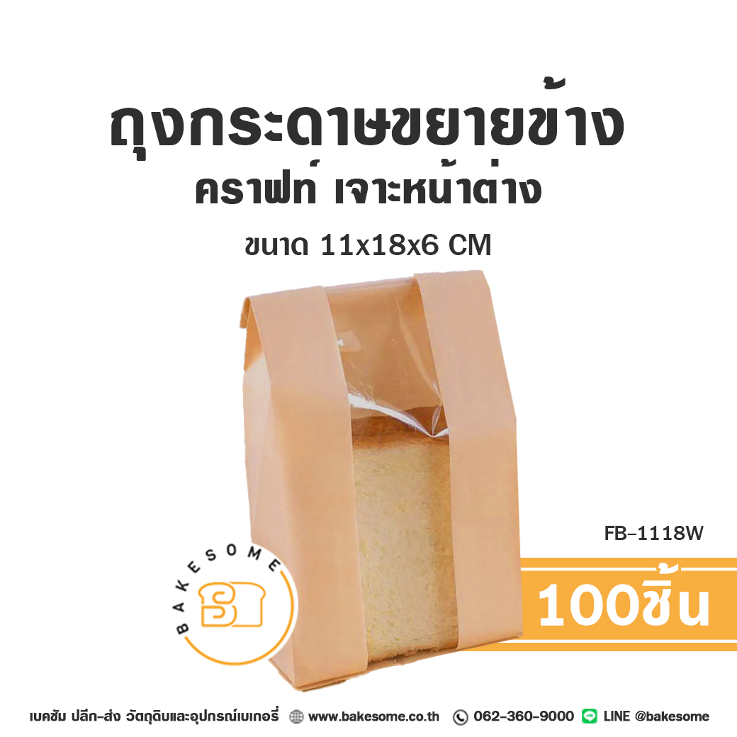 FB-1118W ถุงกระดาษขยายข้าง คราฟท์ เจาะหน้าต่าง 11x18x6 CM (100ชิ้น)