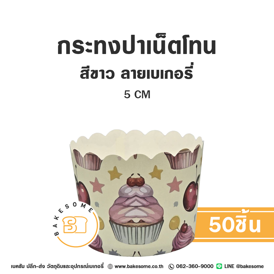 กระทงปาเน็ตโทน กระทงมัฟฟิน สีขาว ลายเบเกอรี่ 5CM Panettone/Muffin Liner White Bakery (50ชิ้น/แพค)