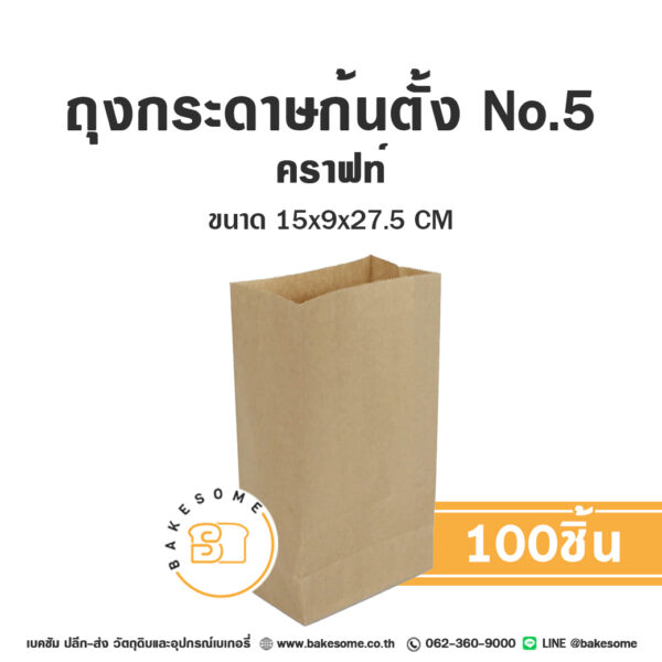 ถุงกระดาษก้นตั้ง เบอร์ 5 คราฟท์ 15x9x27.5 CM (100ชิ้น)