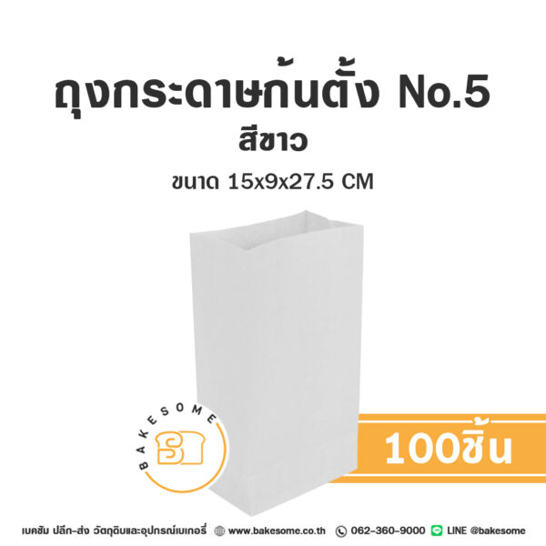 ถุงกระดาษก้นตั้ง เบอร์ 5 สีขาว 15x9x27.5 CM (100ชิ้น)