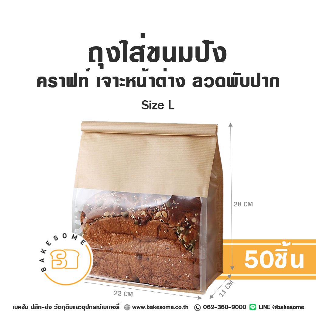 ถุงใส่ขนมปังลวดพับปาก คราฟท์ Size L 22×28+11CM (50ชิ้น)