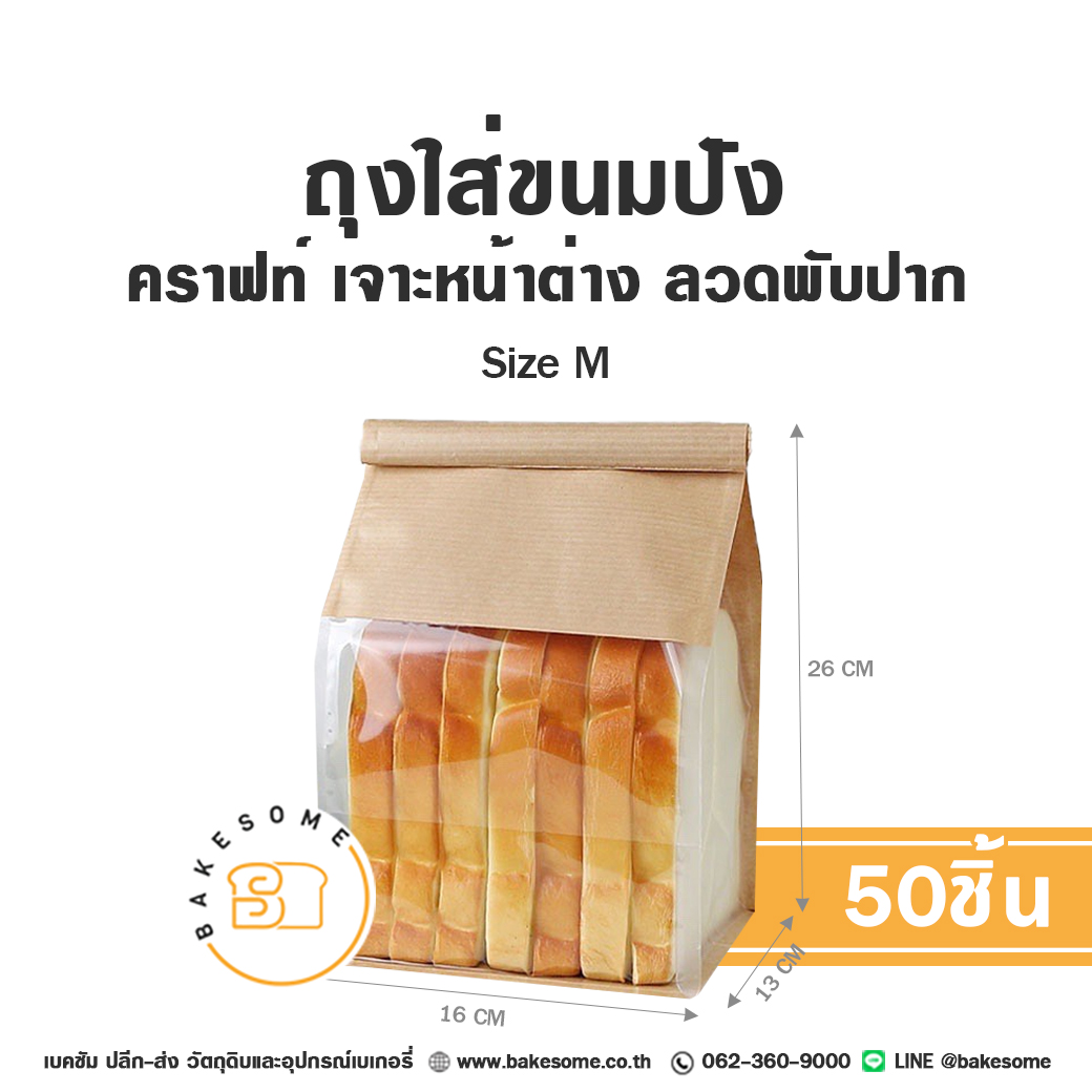 ถุงใส่ขนมปังลวดพับปาก คราฟท์ Size M 16×26+13CM (50ชิ้น)