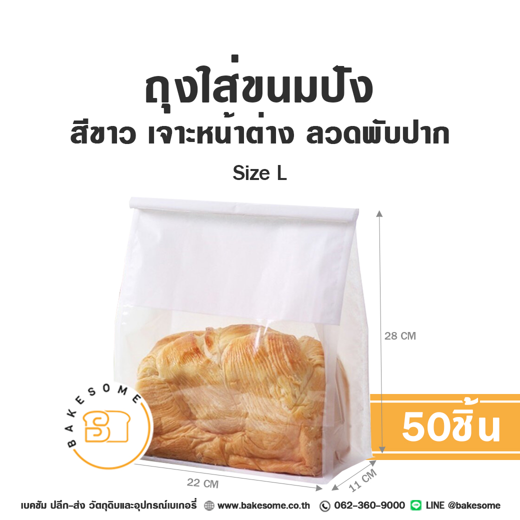 ถุงใส่ขนมปังลวดพับปาก สีขาว Size L 22×28+11CM (50ชิ้น)