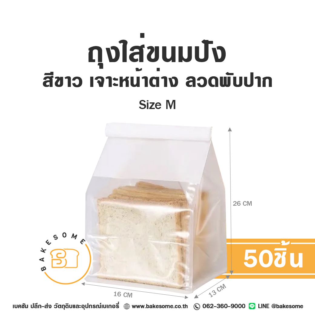 ถุงใส่ขนมปังลวดพับปาก สีขาว Size M 16×26+13CM (50ชิ้น)