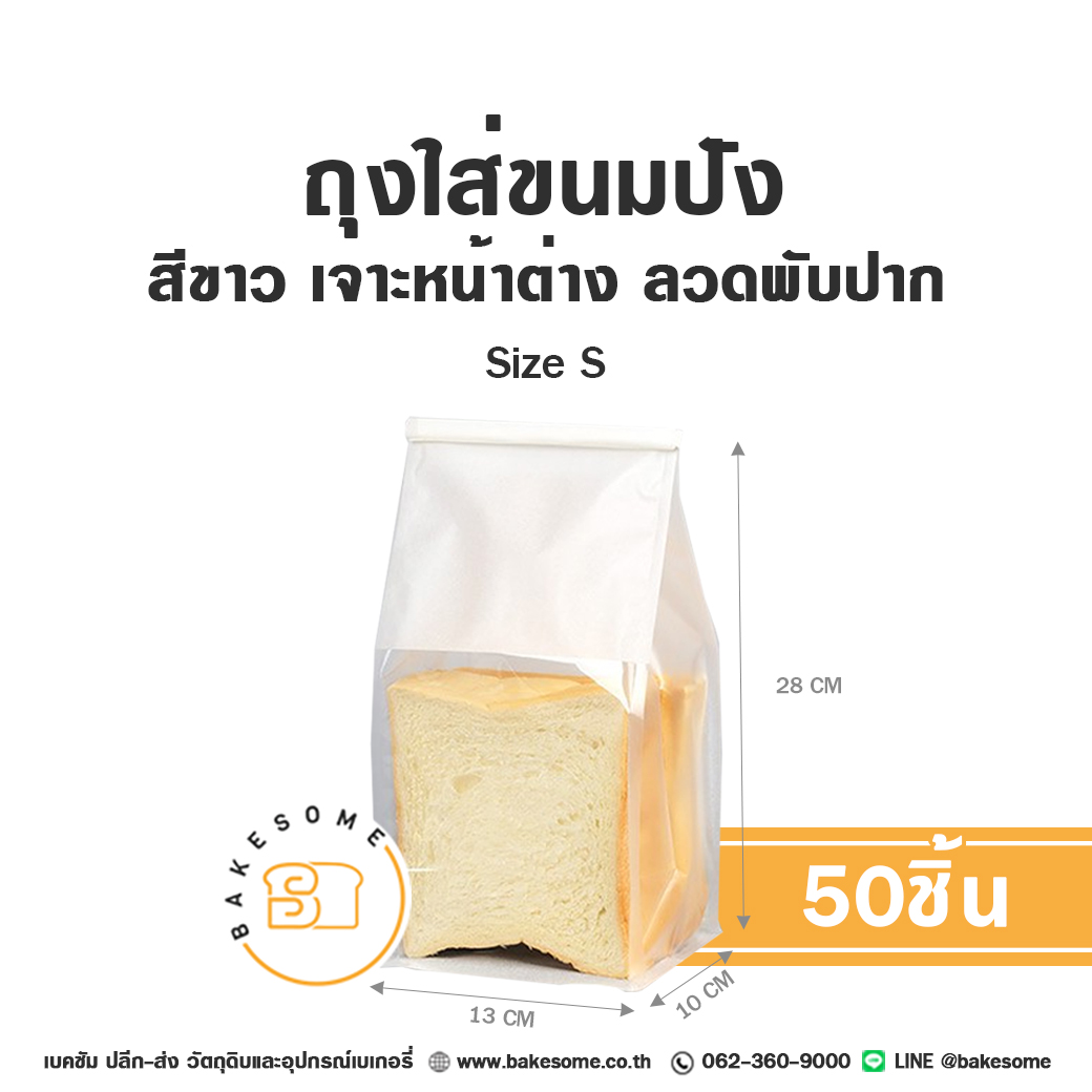 ถุงใส่ขนมปังลวดพับปาก สีขาว Size S 13×28+10CM (50ชิ้น)
