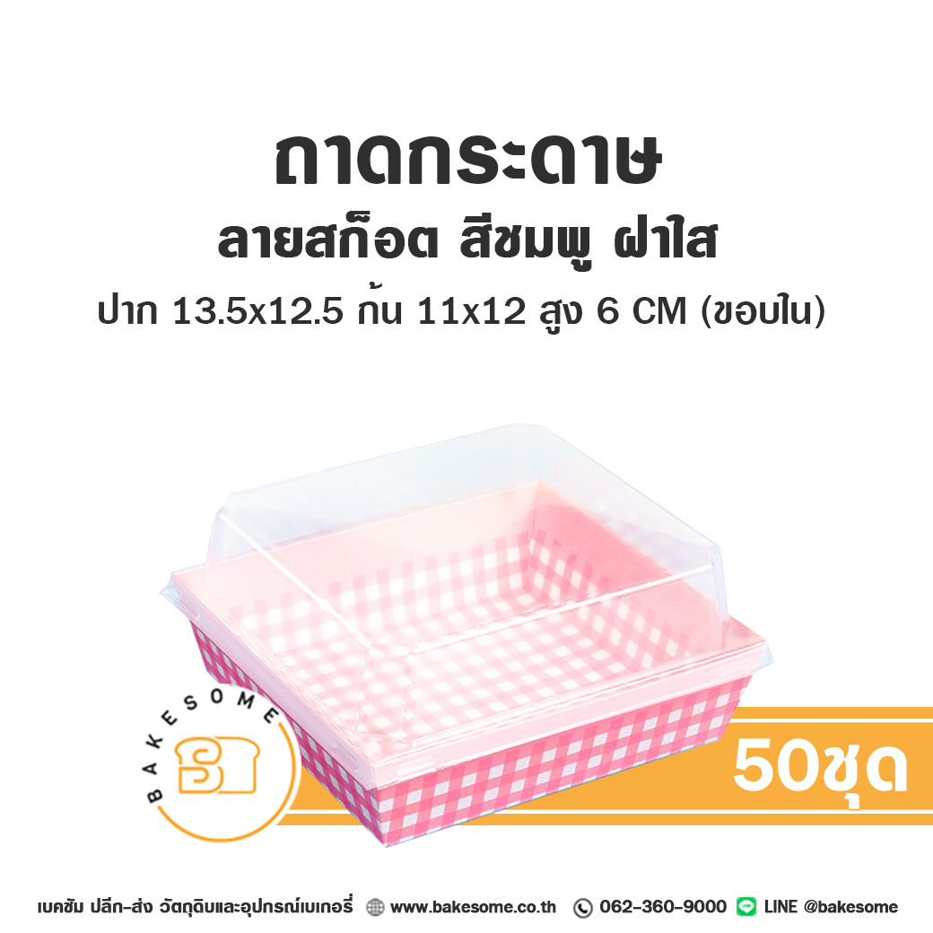 ถาดกระดาษ 1112 ลายสก็อต สีชมพู ฝาใส (50ชุด/แพค)