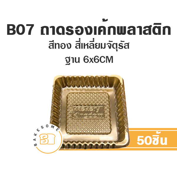 B07 ถาดพลาสติกรองเค้กชิ้น สีทอง สี่เหลี่ยมจัตุรัส (50ชิ้น)