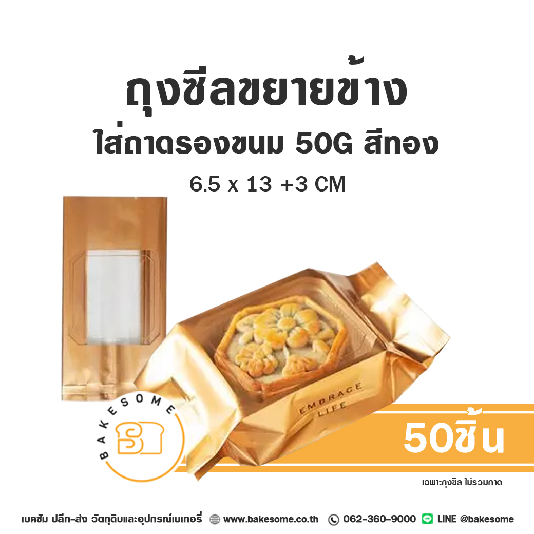 ถุงซีลขยายข้าง สีทอง 50G 6.5×13+3CM (50ชิ้น)