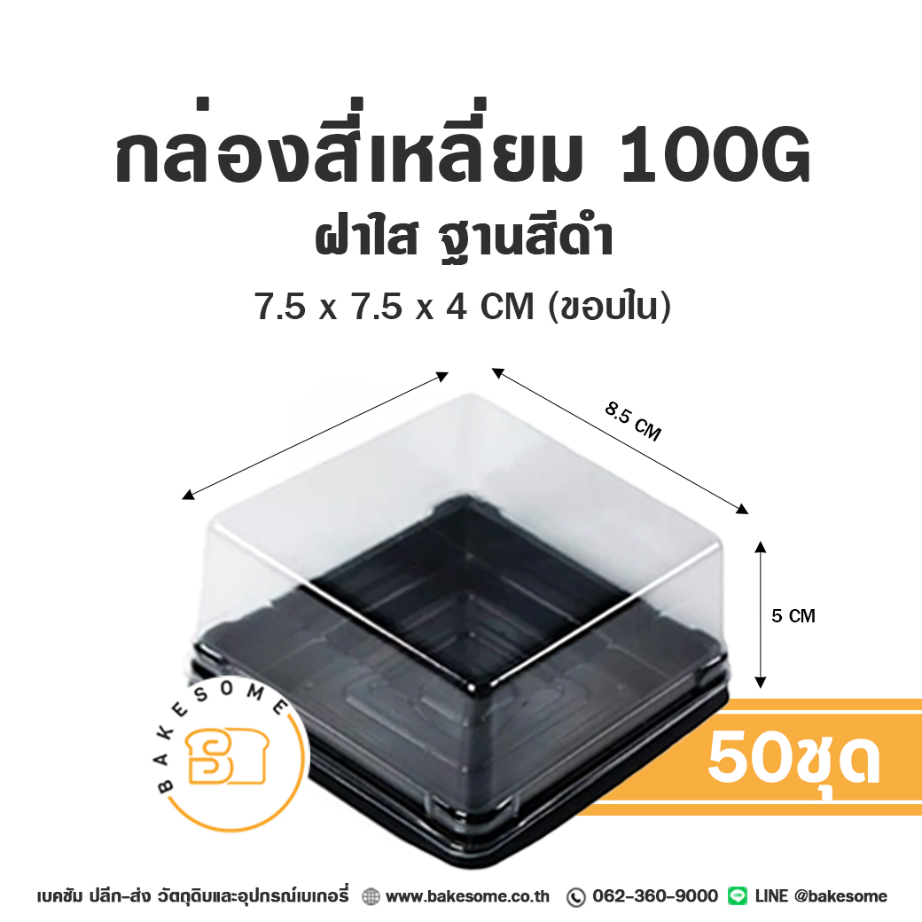 กล่องสี่เหลี่ยมฝาใส ฐานสีดำ 100G (50ชุด)
