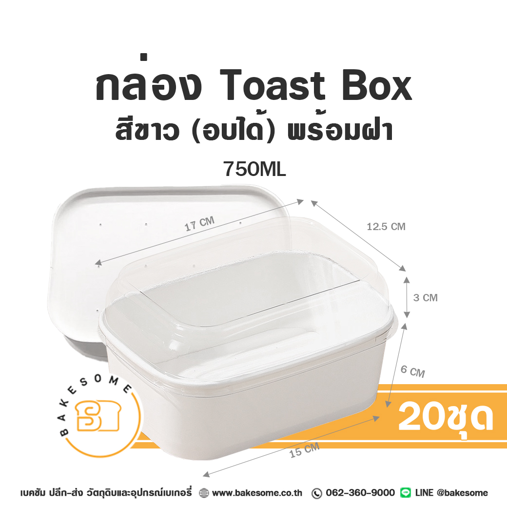 กล่องขนมอบได้ สีขาว พร้อมฝา Toast Box (20ชุด/แพค) กล่อง Toast Box อบได้ กล่องขนมอบได้ เหมาะสำหรับใช้อบเบเกอรี่ Food Grade