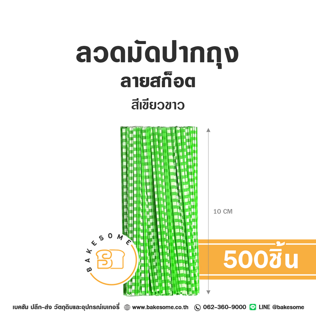 ลวดมัดปากถุง ลายสก็อต สีเขียว 10CM (500ชิ้น)