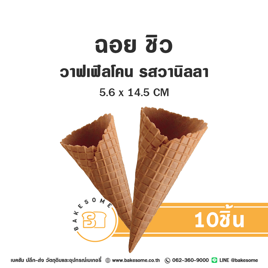 ฉอย ชิว วาฟเฟิลโคน รสวานิลลา ขนาดกลาง (10ชิ้น) Choi Chew Waffle Ice Cream Cone Vanilla Flavored Size M (10PCS)