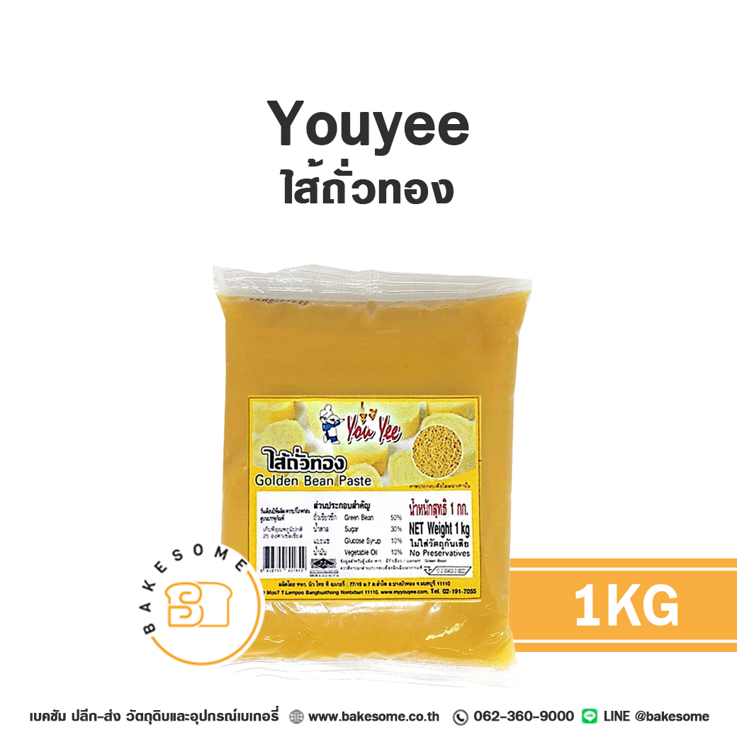 Youyee (ยูยี) ไส้ถั่วทอง Golden Bean Paste 1KG คือไส้ถั่วทองสำเร็จรูปที่ผลิตจาก ถั่วเขียวคุณภาพสูง (Green Bean 50%) ผสมผสานกับ น้ำตาล (Sugar 30%) และ กลูโคส (Glucose 10%) อย่างลงตัว เพื่อให้ได้เนื้อสัมผัสที่เนียนละเอียด หอมมัน และมีรสชาติ หวานกลมกล่อม เป็นเอกลักษณ์ที่ไม่เหมือนใคร เนื้อไส้มีความยืดหยุ่น ปั้นง่าย และคงรูปได้ดีเยี่ยม เหมาะสำหรับการทำขนมหลากหลายชนิด ไม่ว่าจะเป็นขนมไหว้พระจันทร์ ขนมเปี๊ยะ ซาลาเปา หรือไส้ขนมไทยโบราณต่างๆ